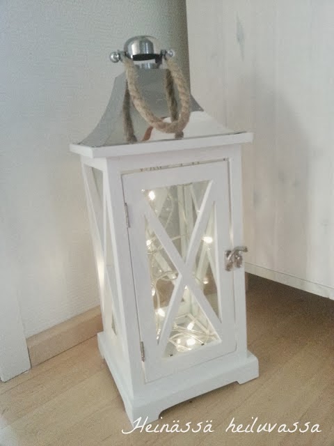 Eteiseen olenkin jo alkusyksystä laittanut valot lyhtyyn. Valmistautumista pimeään aikaan.