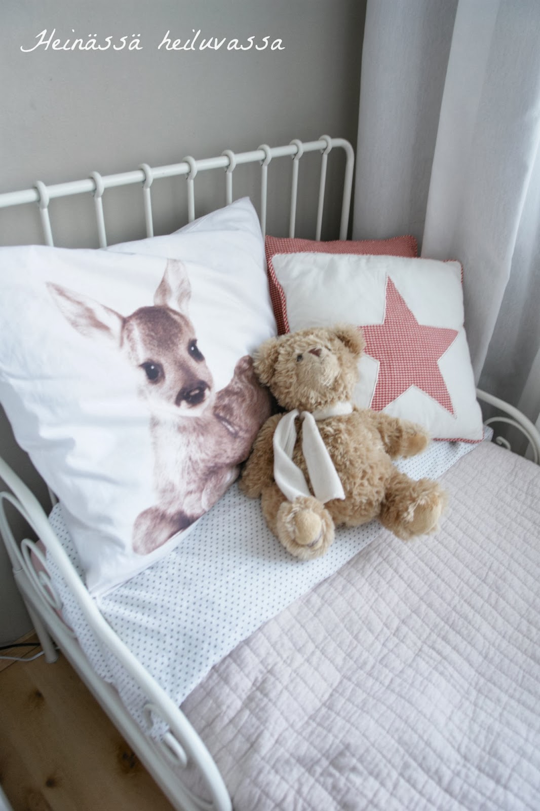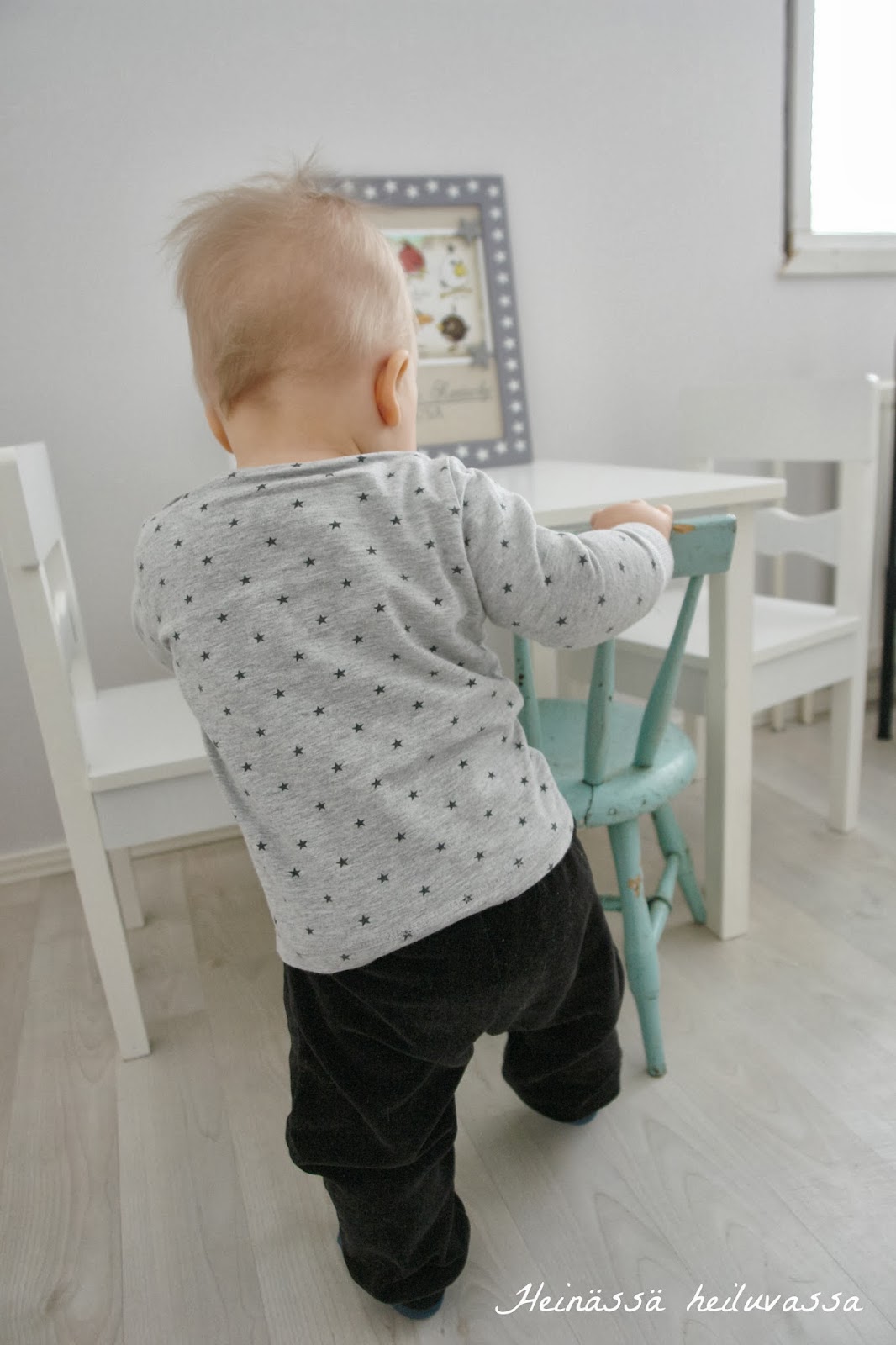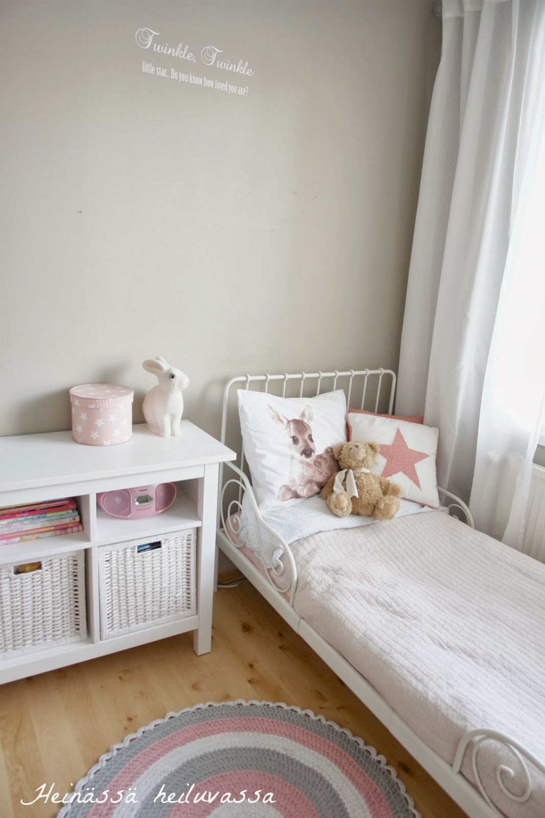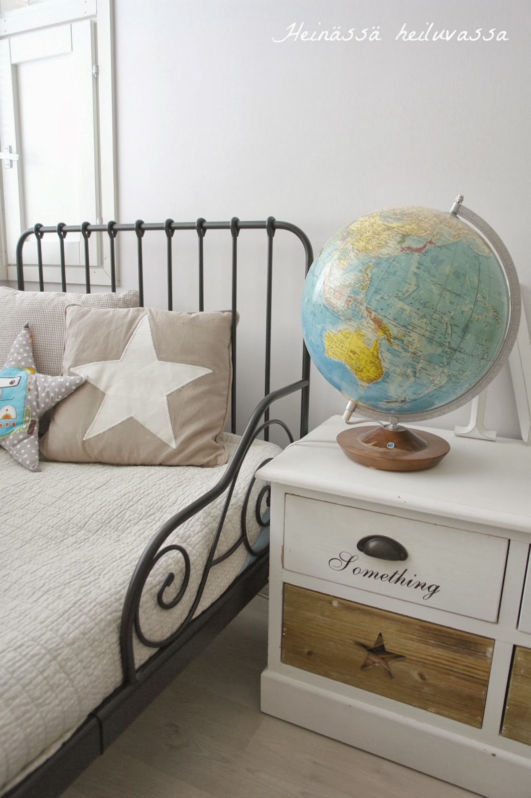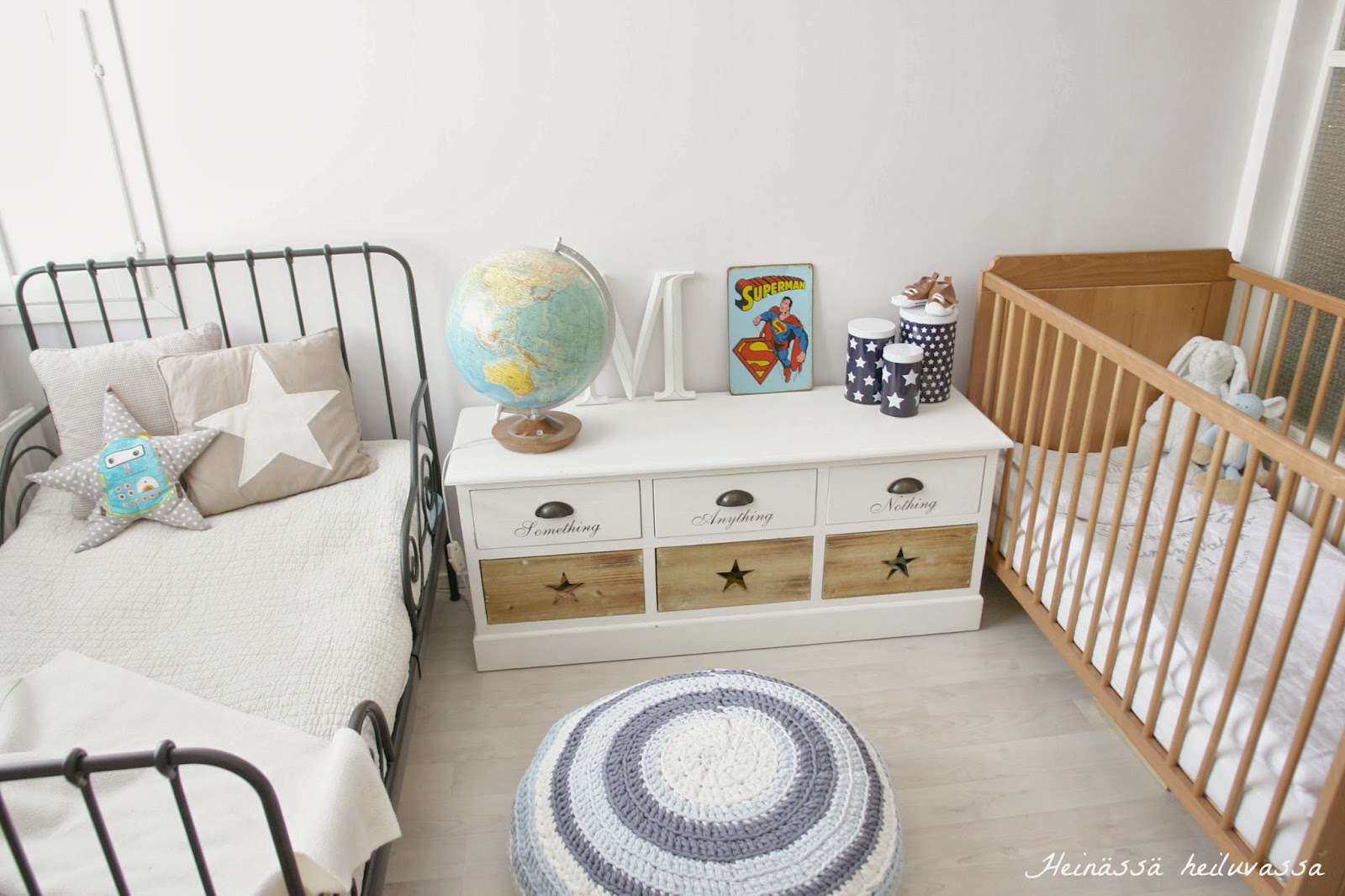 Otin kuvan myös makuuhuoneemme pienen pienestä työnurkkauksesta, joka on mieheni valtakunta. Laajempi kuva oli kuitenkin niin pimeä ja rakeinen, että päätin kuvan nyt jättää julkaisematta. Työpisteestä voit lukea aiemman jutun täältä. Työpiste on siis täysin mieheni toiveiden mukaan toteutettu, mutta siellä käyn kirjoittelemassa silloin kun mies tarvitsee läppäriä.