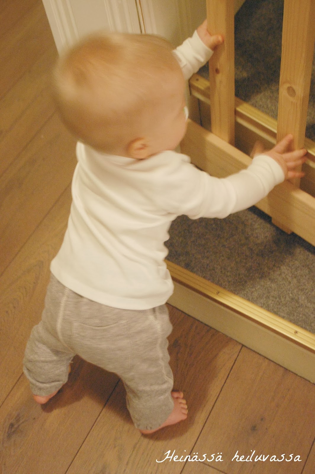 Pienemmällä ei ole vielä päiväpeittoa vaan sen virkaa ajaa H&M Homen pellava pussilakana. Ehkä se kiva päiväpeitto vielä tulee vastaan ilman suurempia etsintöjä. Olen myös nyt kovasti pohtinut, että maalaisinko pinnasängyn valkoiseksi?? Vai annanko vaan olla?